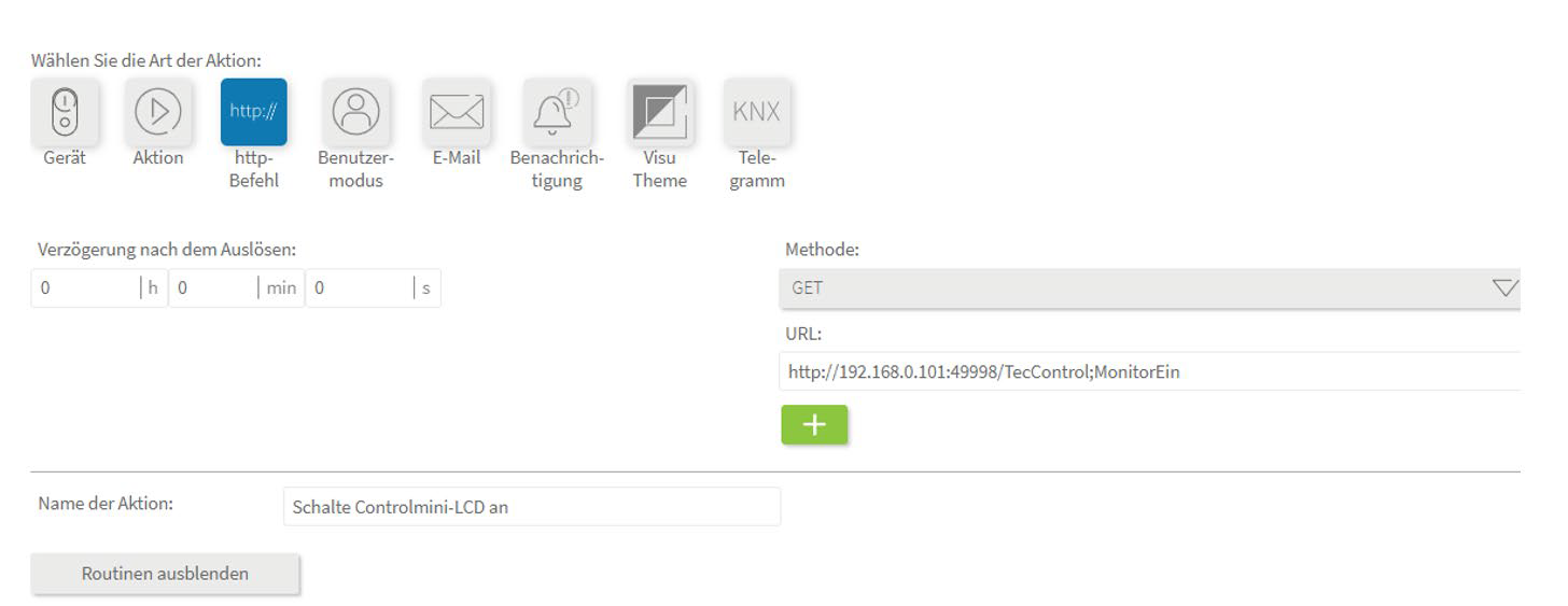 * Verwenden Sie den Port des Tectools und die IP-Adresse des zu schaltenden Gerätes. Wenn