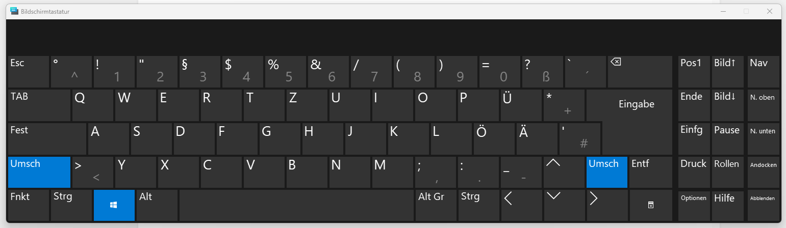 In manchen Fällen wird eine Bildschirmtastatur benötigt, die jedoch nicht automatisch geöffnet wird. Mit dem nachfolgenden Befehl ermöglichen Sie die Anzeige der Tastatur: